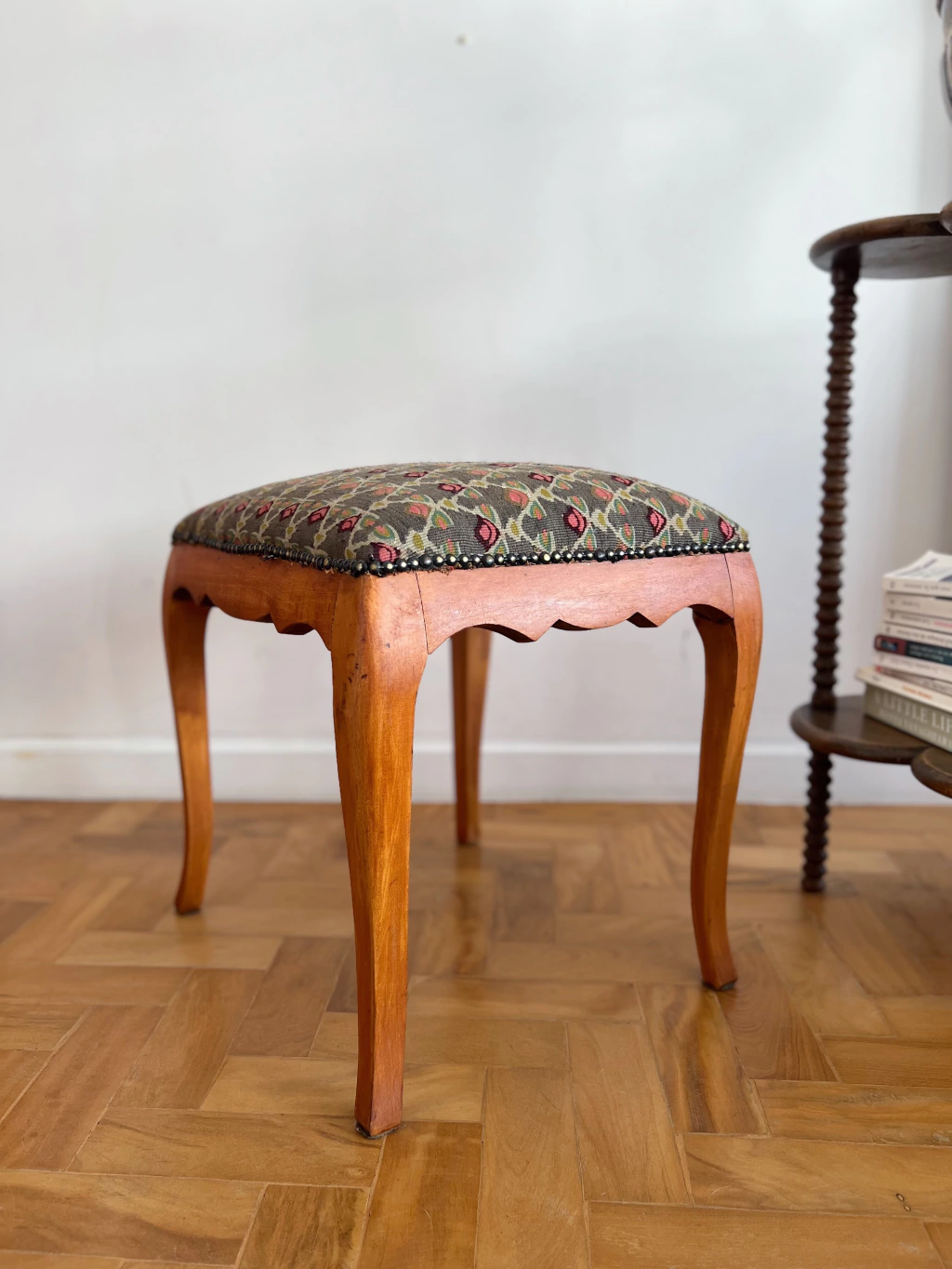 Banqueta em kilim senneh iraniano vintage, madeira peroba do campo mel, tachinhas. Pronto para uso, sem defeitos.