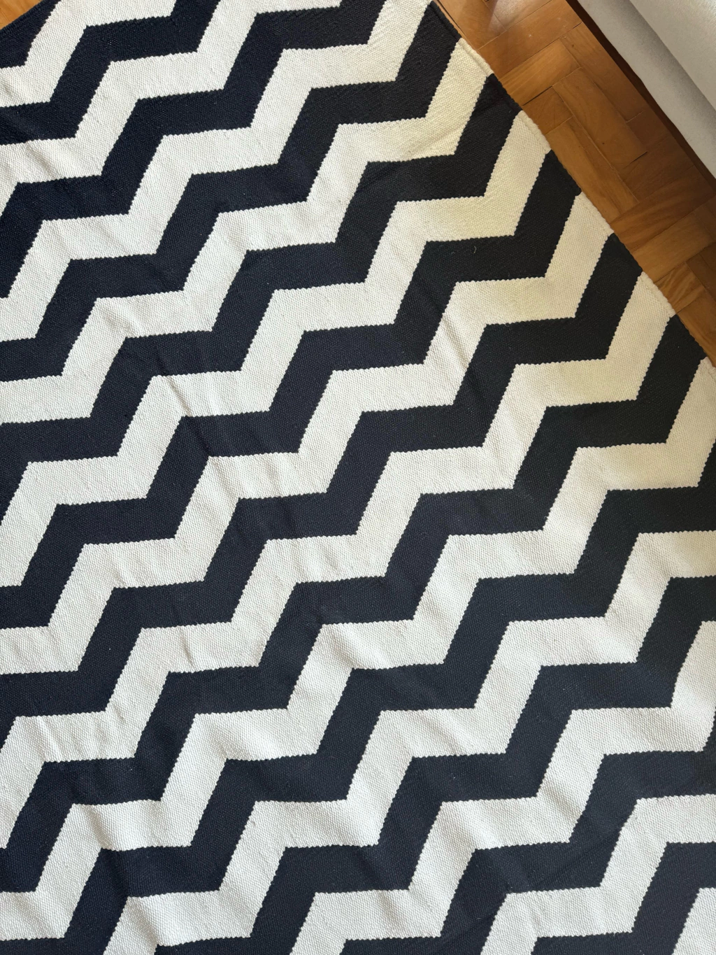 Tapete Chevron em trama bem grossa em algodão. Confecção nacional, da loja Casa Julio. Sem defeitos.