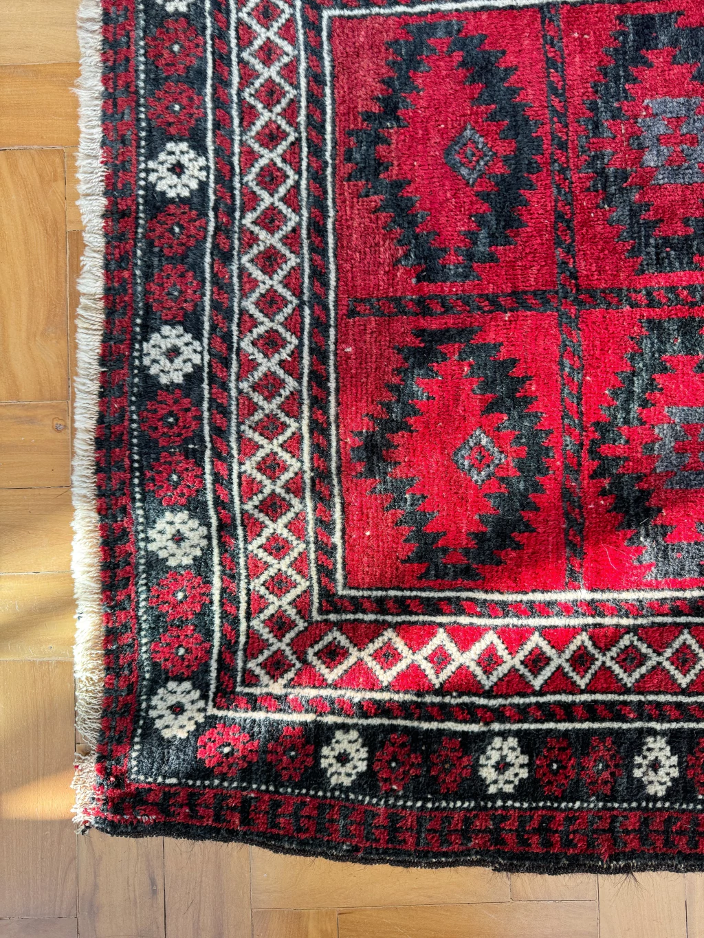 Tapete de oração, em 100% lã, vermelho vivo com detalhes em preto e branco. Charminho para lavabos, lateral da cama ou qualquer cantinho da casa. O toque vintage incontornavel. Sem defeitos, perfeito. Lavado profissionalmente e pronto para uso.