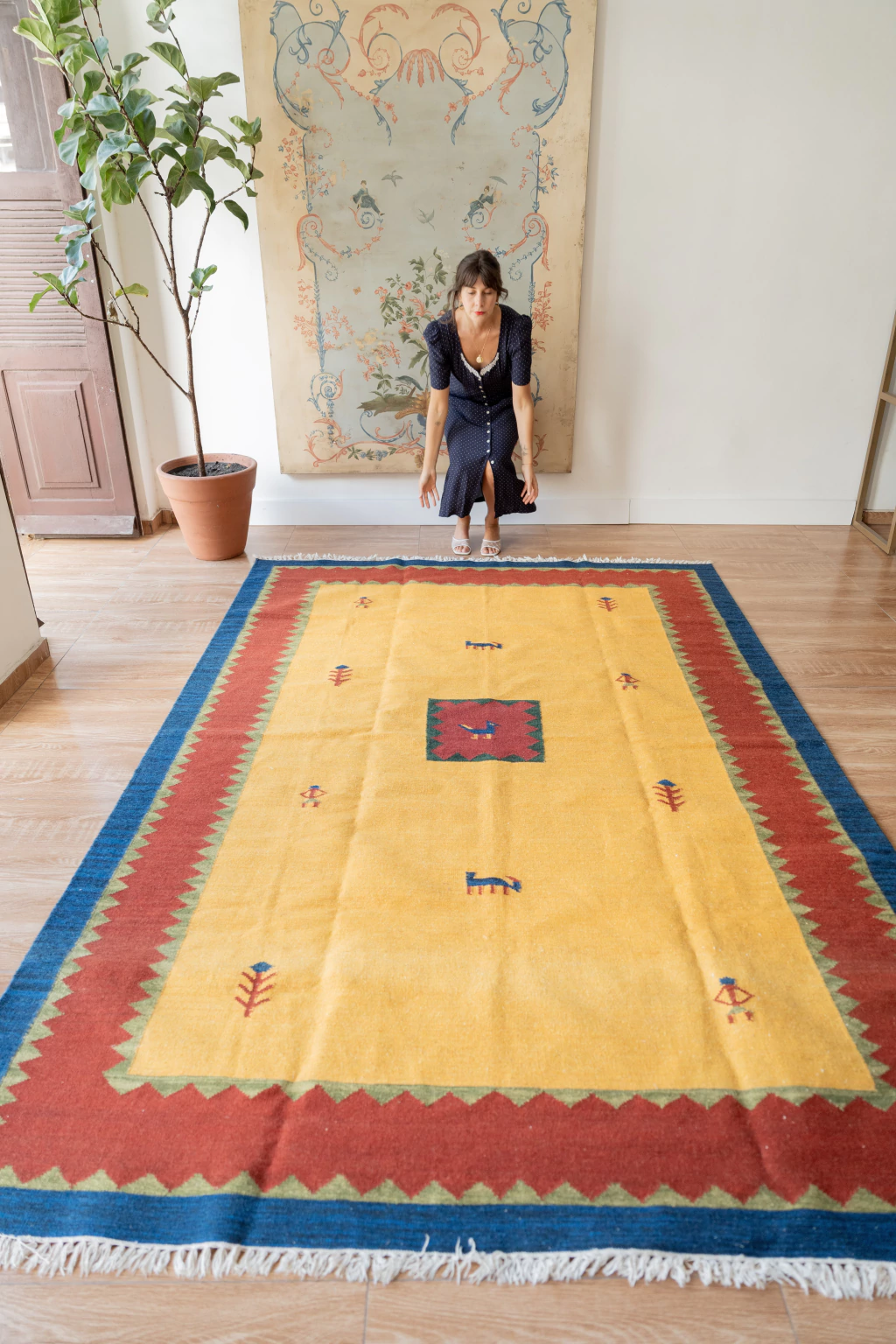 Kilim Gabbeh super perfeito, caimento lindo no chão - amo para quartos kids, brinquedoteca, salas de tevê, home office... Franjas, cordões e lã sem defeitos. Lavado profissionalmente e pronto para uso.