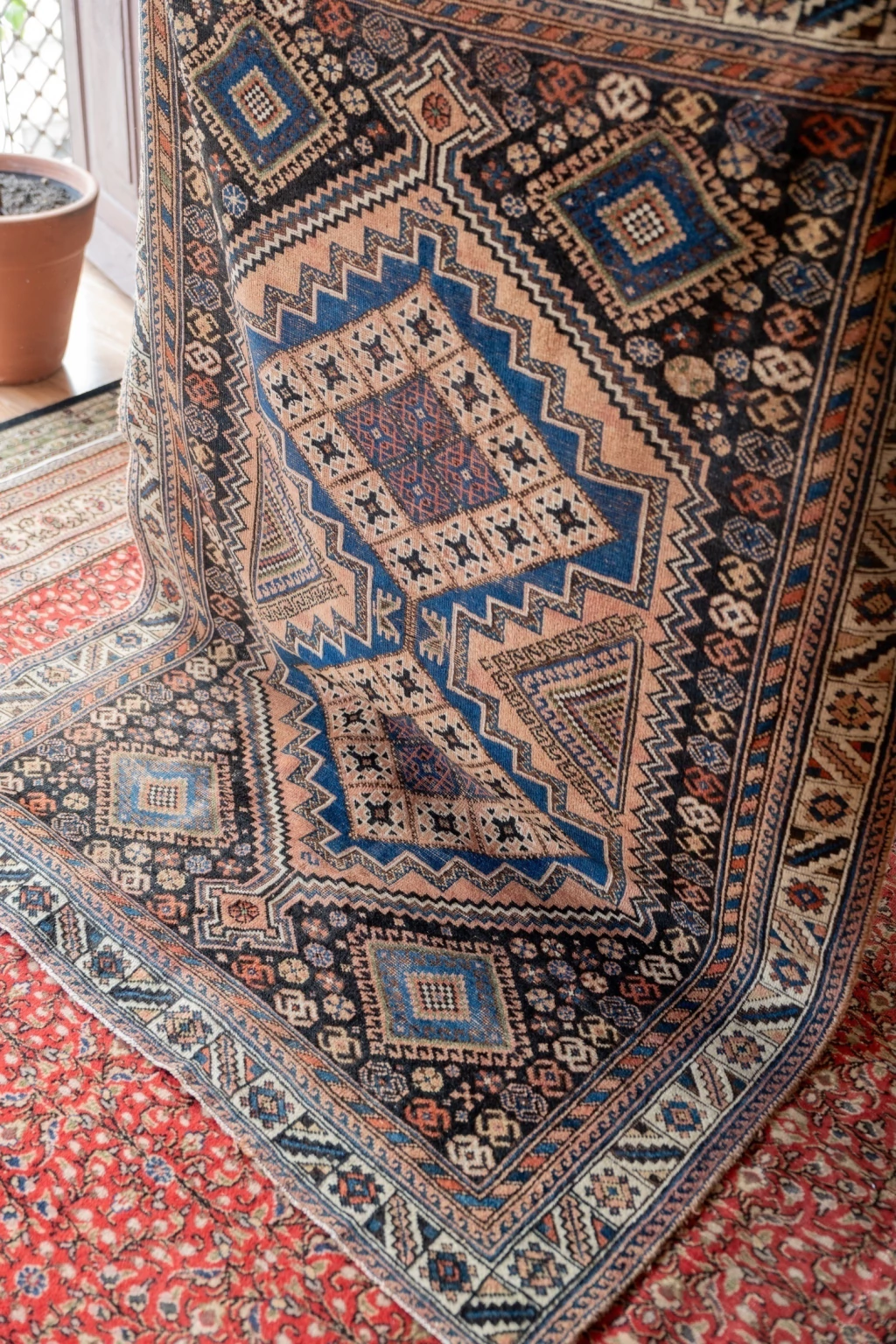 Shiraz super antigo, finíssimo, chique e em 100% lã. Uma obra de arte! Lã baixinha charmosa, cordão e franjas em perfeito estado. Lavado profissionalmente e pronto para uso.